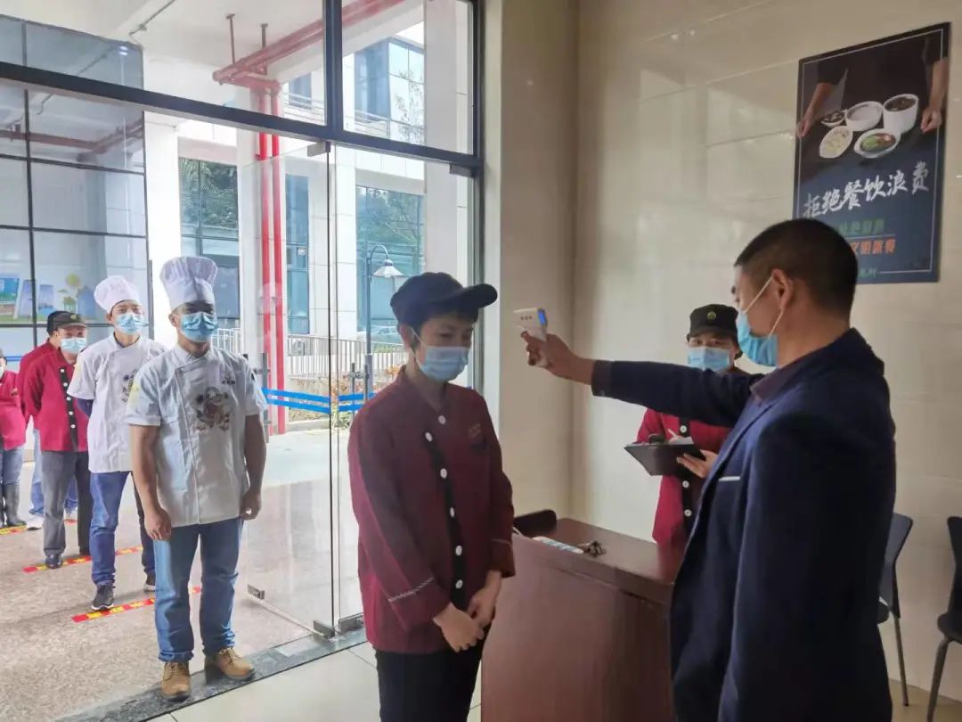二是嚴(yán)格做好食堂晨午檢工作,工作人員每天進(jìn)入食堂必須進(jìn)行掃碼測溫,落實(shí)員工上崗洗手消毒工作。